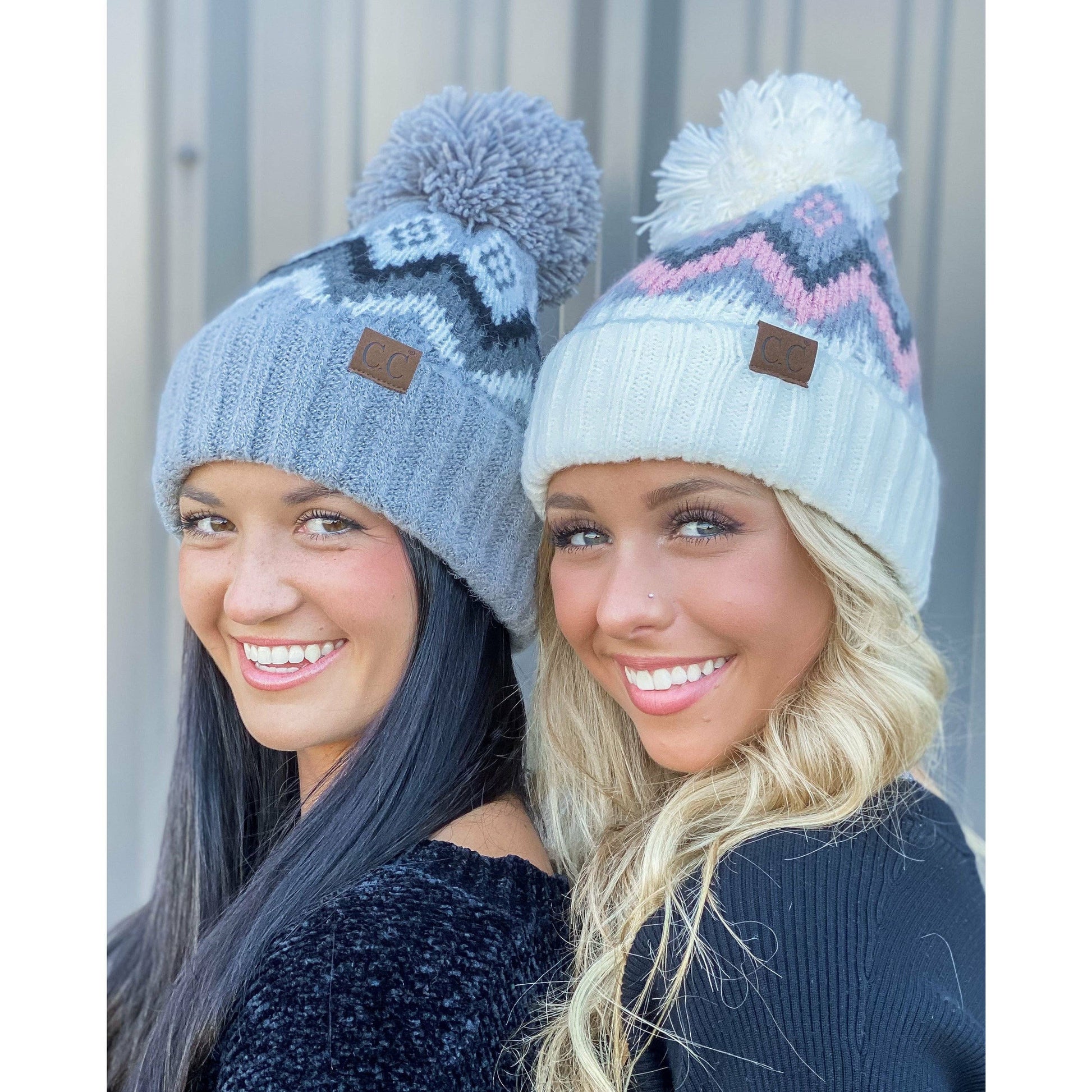 Aztec Chevron Knit Pom C.C Beanie HAT3816