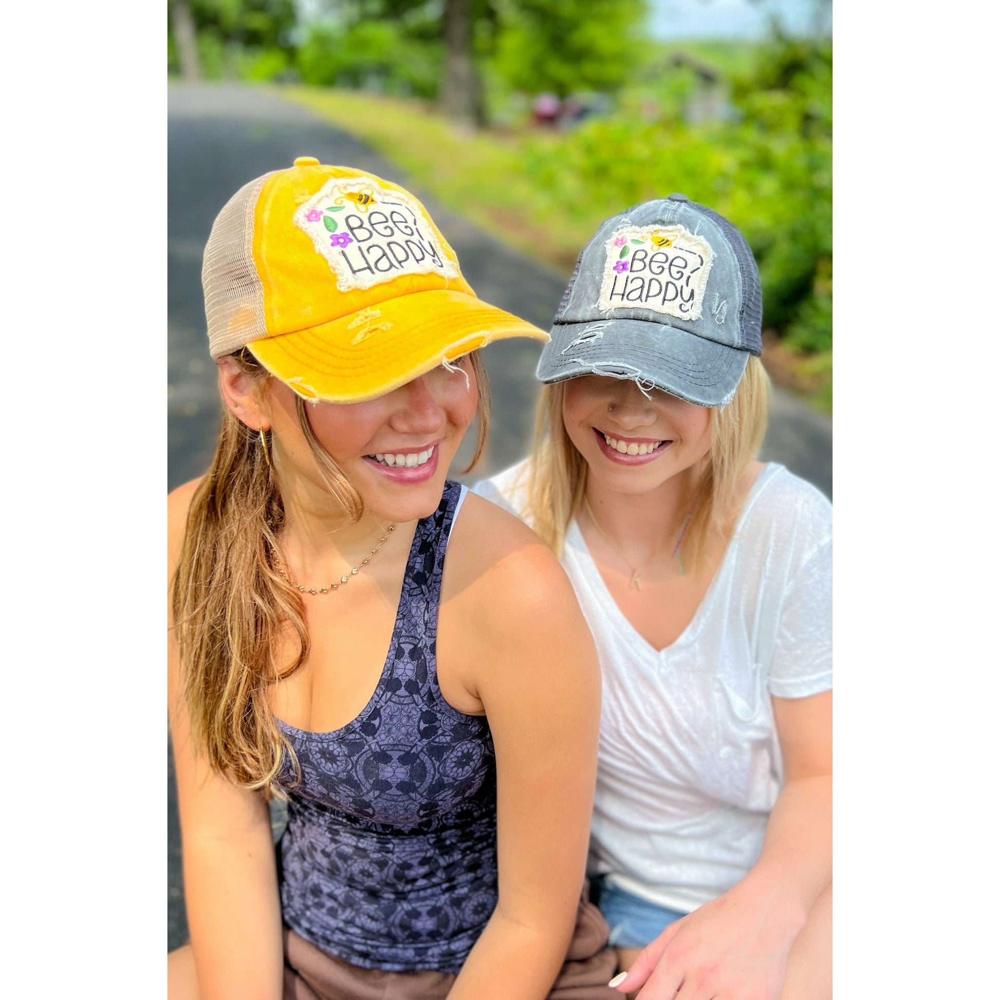 Embroidered Bee Happy Patch C.C High Pony Criss Cross Ball C
