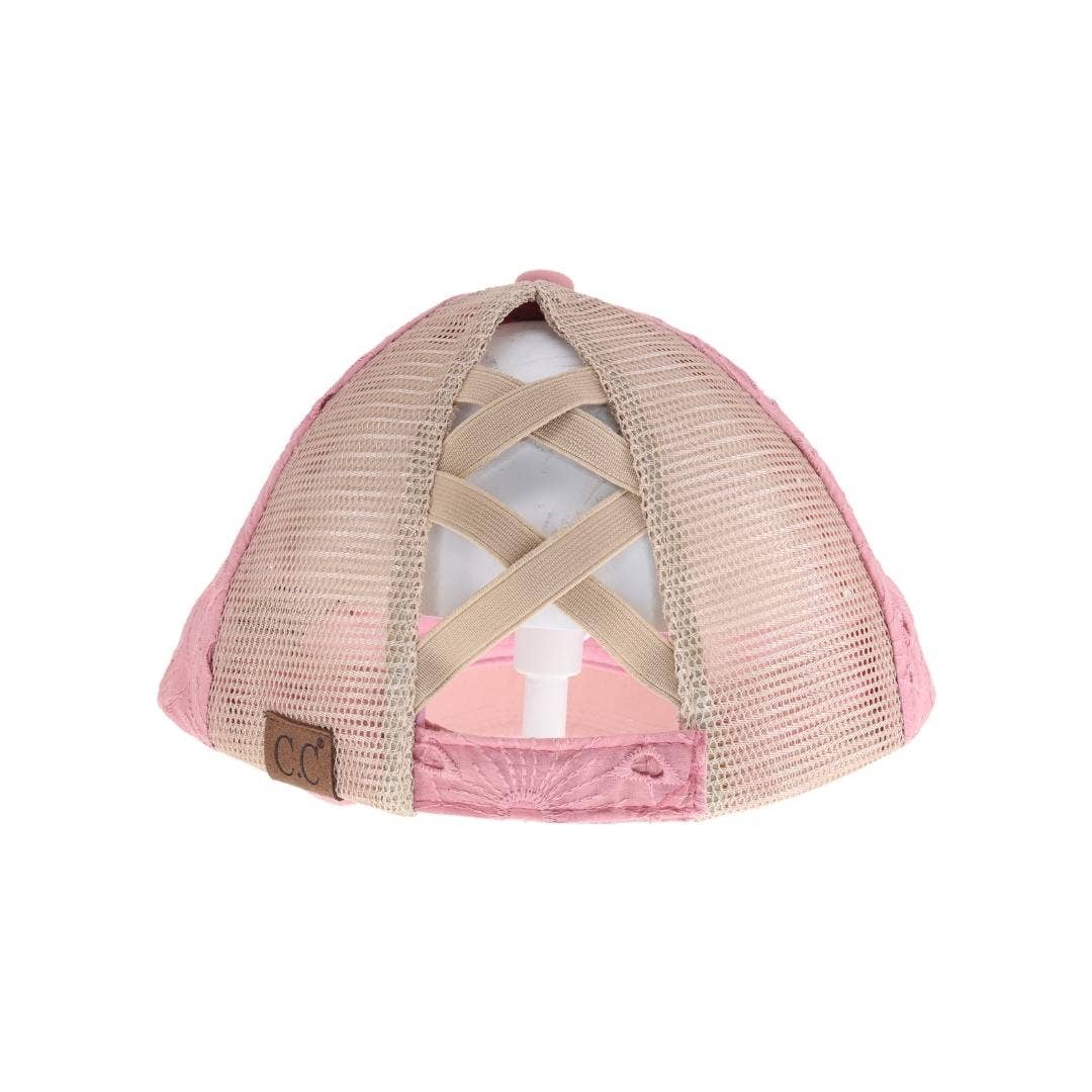 Embroidered Floral Cotton Eyelet Criss Cross High Pony C.C B