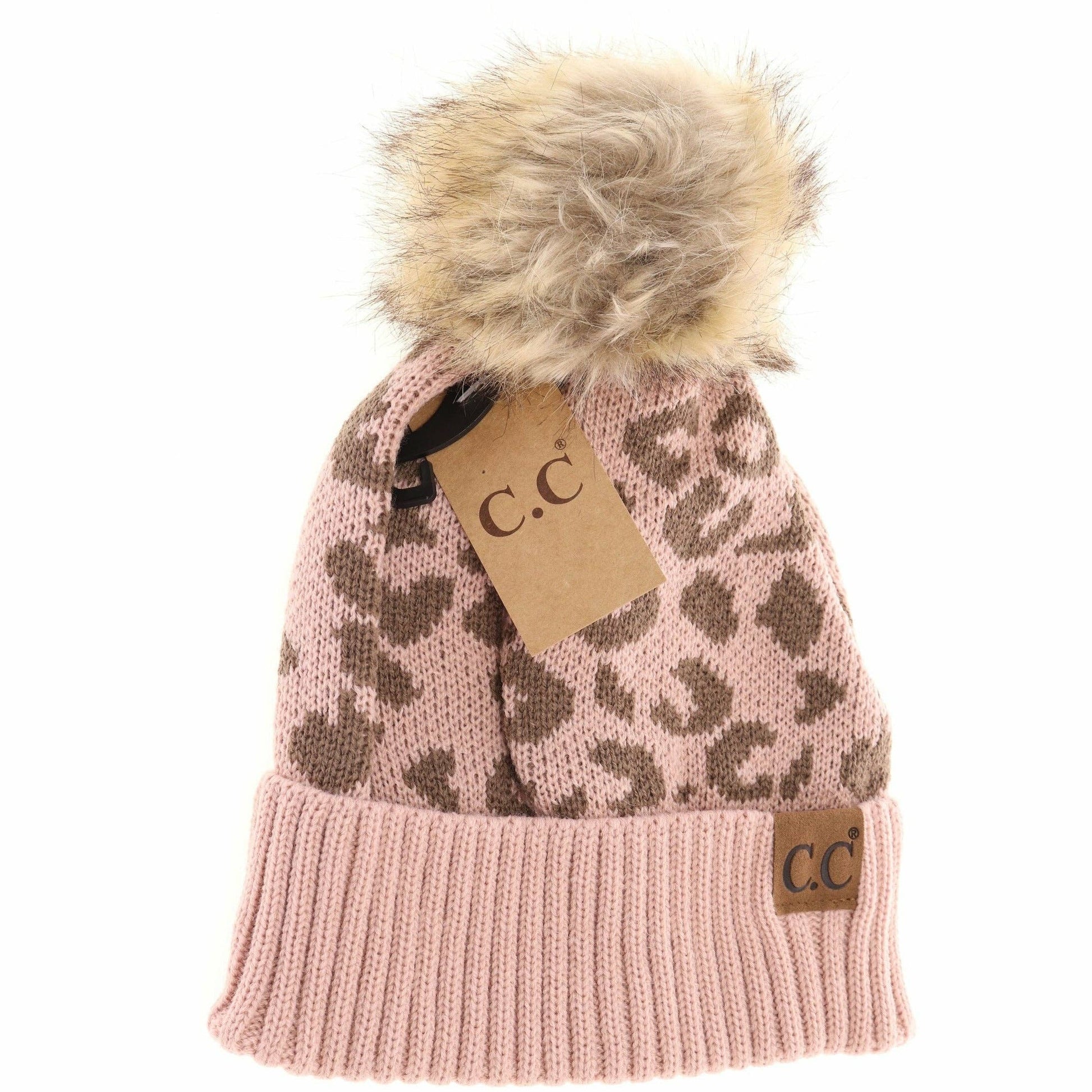 Leopard Pattern Fur Pom Beanie YJ2091